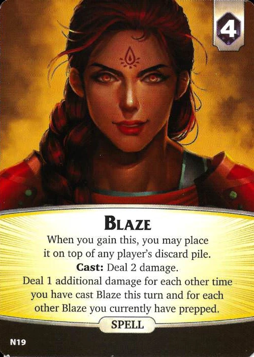 - Deal 1 additional damage for each other time you have cast Blaze this turn and for each other Blaze you currently have prepped. All damage is applied at the same time to the same target.