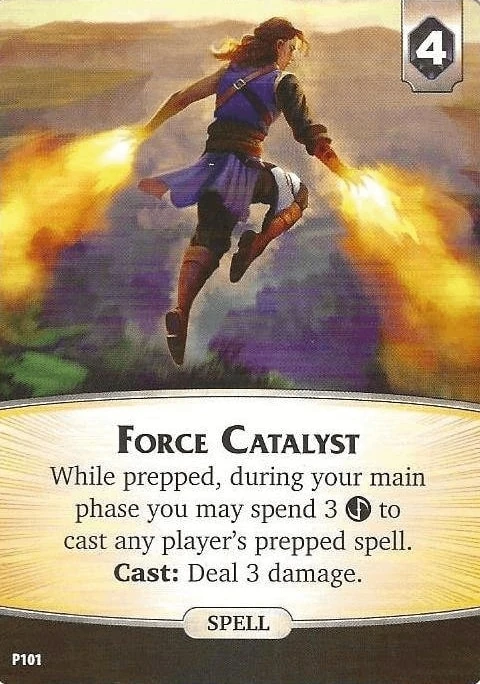 Force Catalyst is a spell and promo card from the Outcasts kickstarter. Force Catalyst may be gained from the supply for 4
