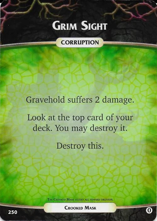 Grim Sight is one of eleven corruption cards used by Crooked Mask from the Core set.