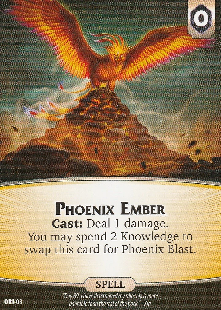 starter card (or other cards with Knowledge gaining effects). The three starting Phoenix spells can be upgraded for 2 knowledge tokens each, while the second level spells can be upgraded for 3 each. Phoenix Blaze