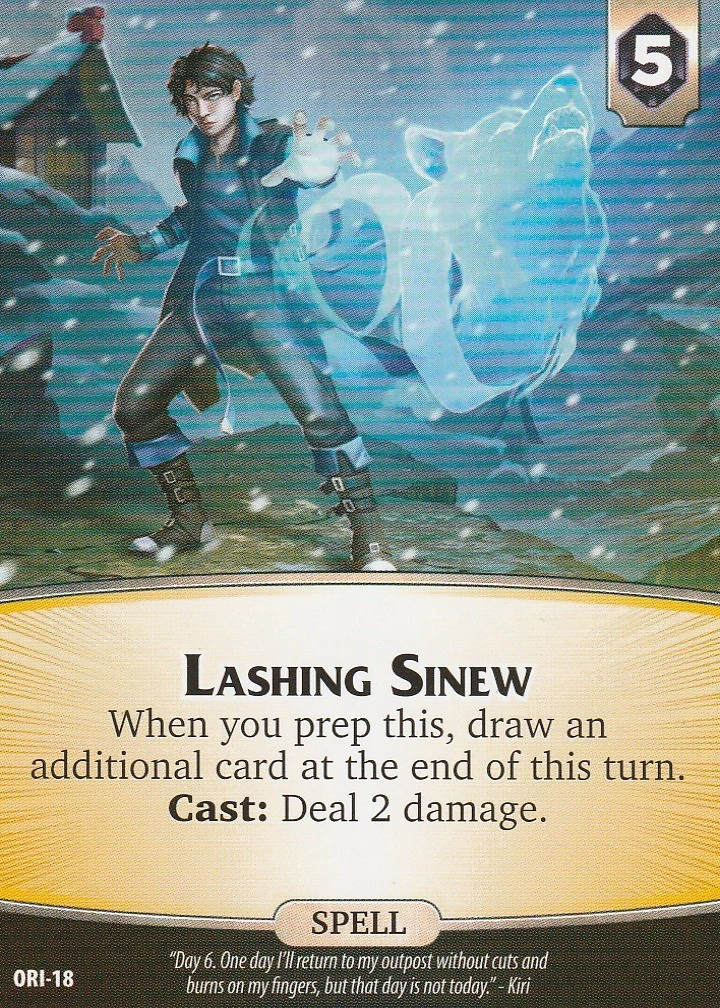 When you prep Lashing Sinew, draw an additional card at the end of this turn.