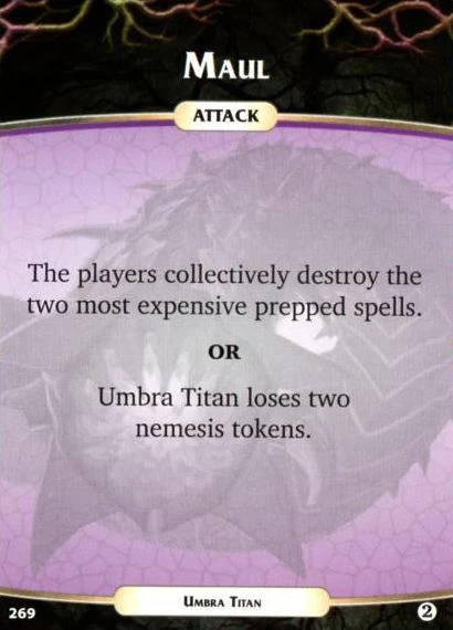 - The players collectively destroy the two most expensive prepped spells. If more then two spells are tied for being most expensive, the players choose which two are destroyed.