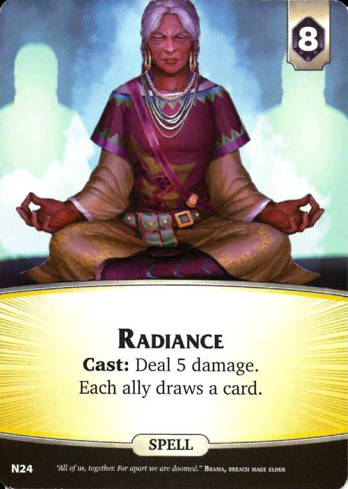 Radiance is a spell card from The Nameless expansion. Radiance may be gained from the supply.