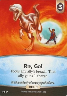 Razra is a powerful breach mage, but not in the normal sense like other mages in Gravehold. Razra's strength lies in her love of the wild and untamed corners of nature. It was this same love that led Razra to befriend the creature she calls Rip. Razra has been able to train Rip to do most anything to help her, or other mages. Like her sister Mazra, Razra has access to personal upgrades of her two starter cards, Rip, Help!
