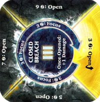 Razra starts with one open breach and three closed breaches in the following orientations.