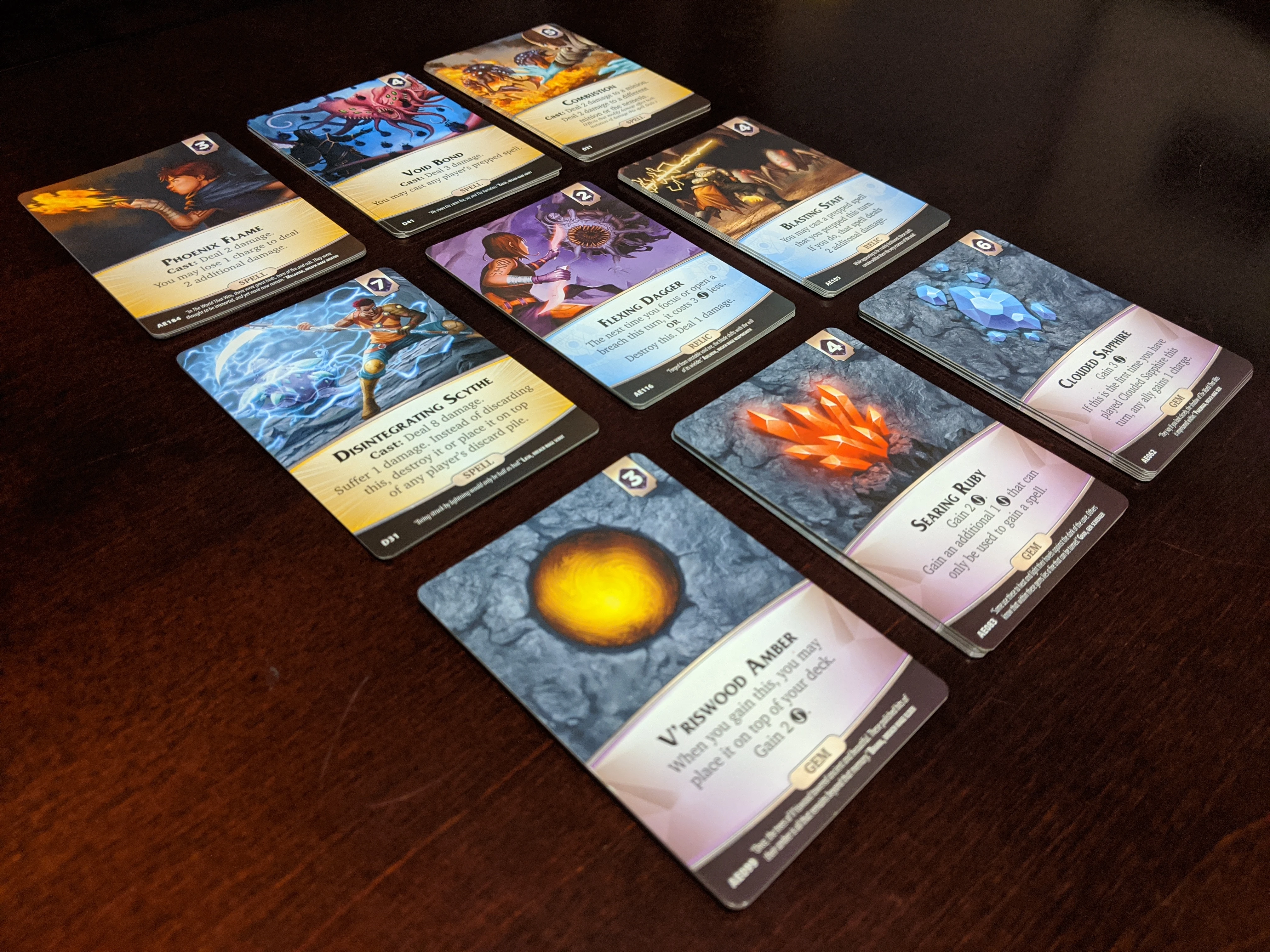 The supply always contains 3 gems, 2 relics, and 4 spells. These may be chosen at random, or chosen by the players so that there are guaranteed effects/prices present. Place each card of the same name in its own separate pile, in the middle of the table.