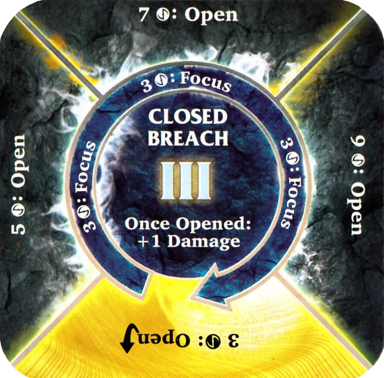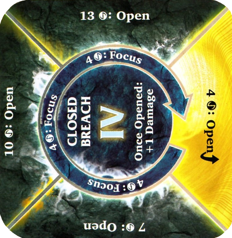 Talix (Legacy of Gravehold) starts with two open breaches and two closed breaches in the following orientations.