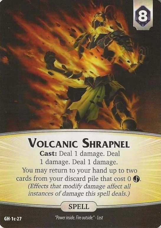 Volcanic Shrapnel is a spell from Legacy of Gravehold. Volcanic Shrapnel may be gained from the supply for 8